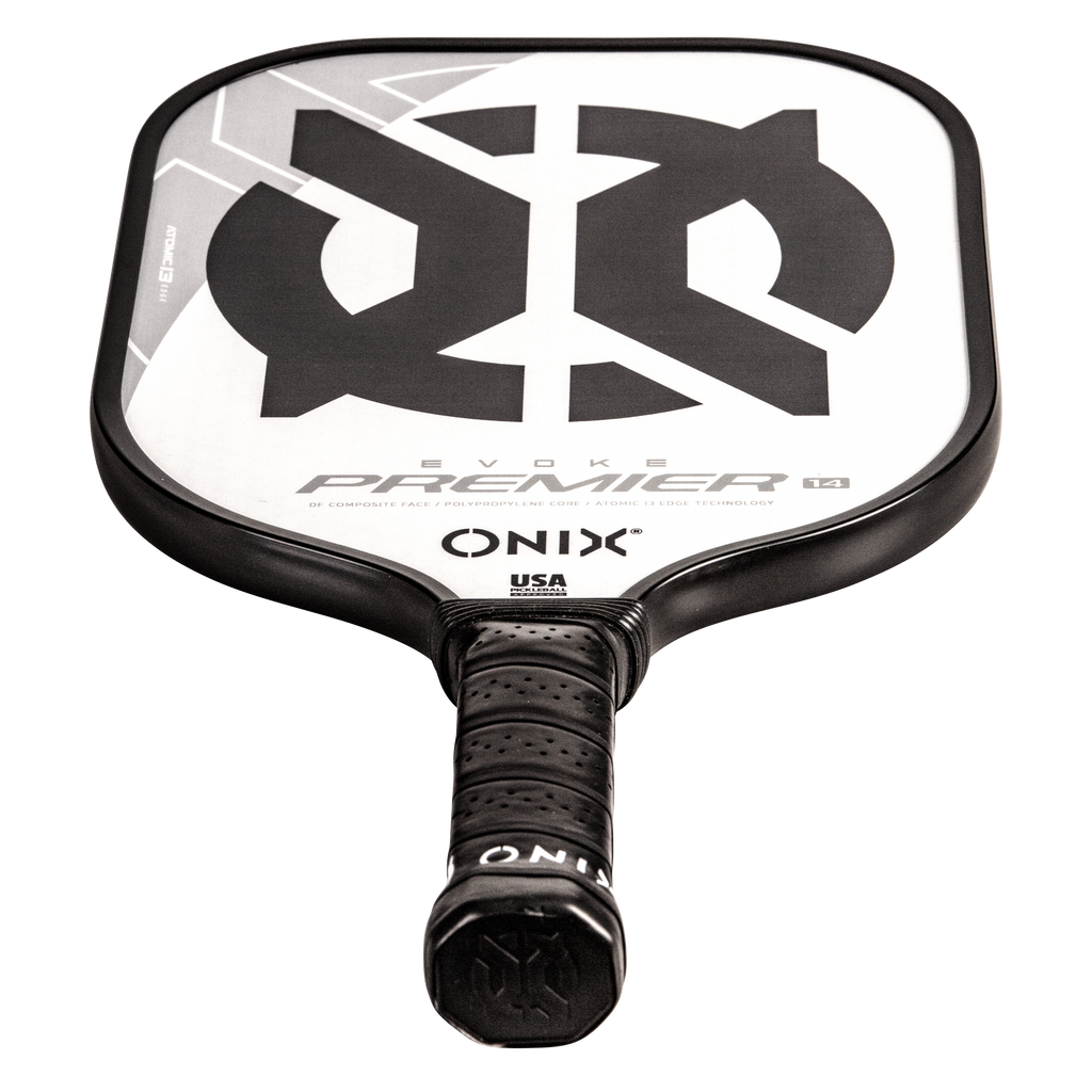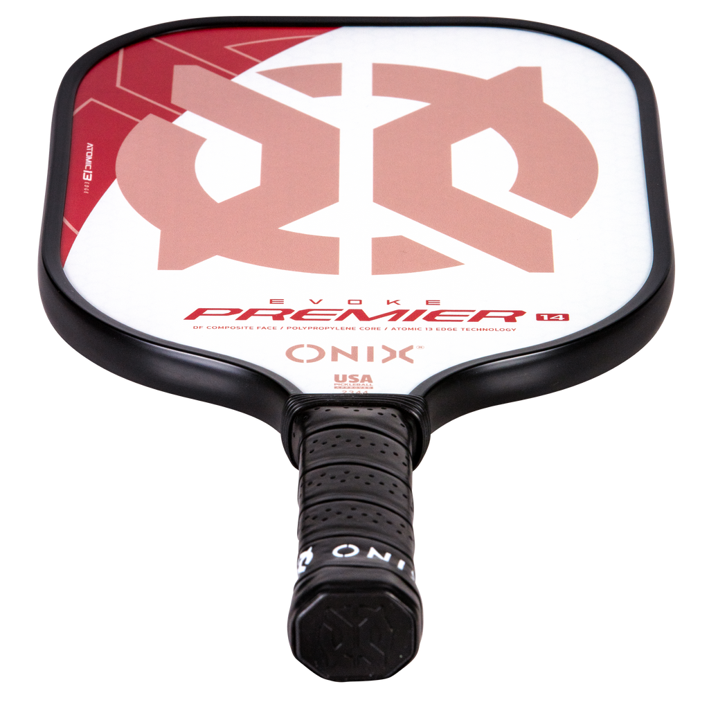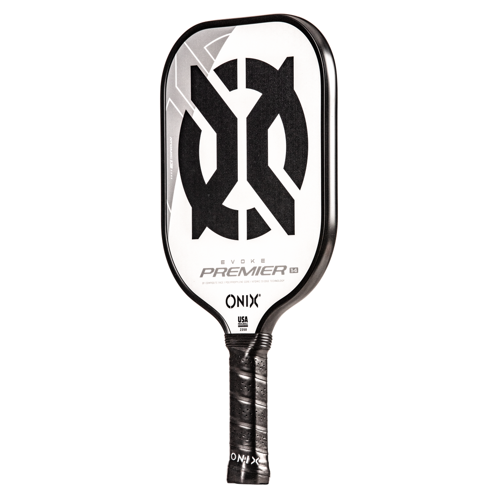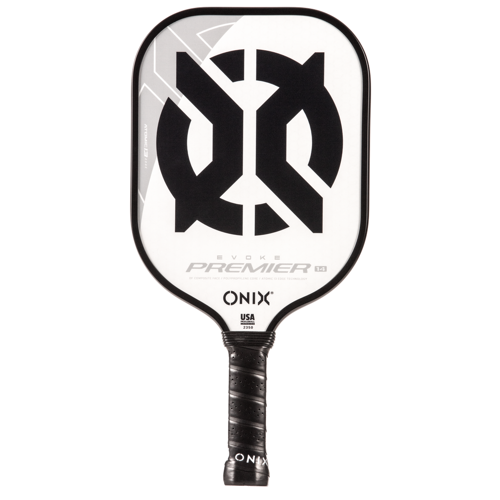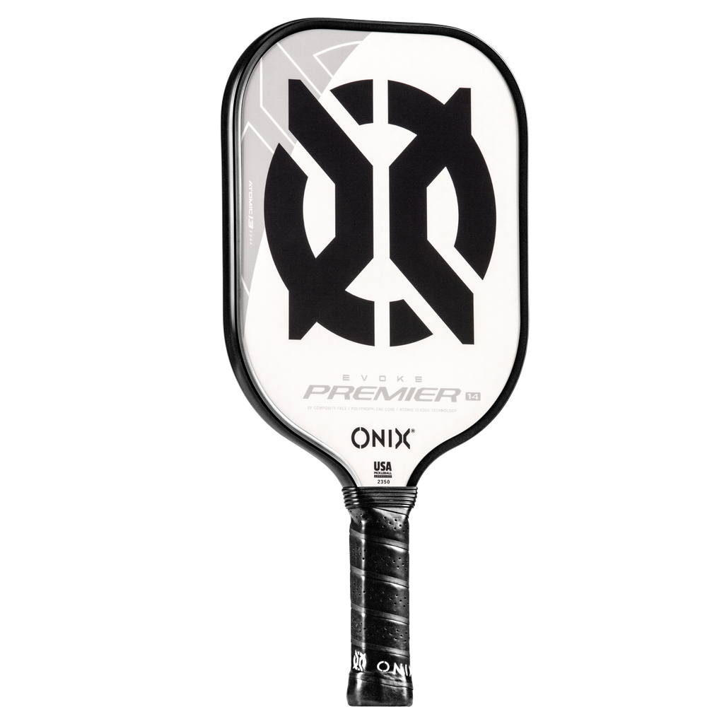 The Evoke Premier paddle brings power and precision to your game like never before. The Evoke Premier uses the new Atomic13 Edge Technology, an edge guard specifically designed to disperse shock while increasing power and swing-speed to the paddle. The DF Composite face provides a consistent minimal coating on the surface to soften the ball without losing any spin or pop off the composite face. The precision cut polypropylene core delivers incredible touch. There are three weights available — light weight paddle (7.5-7.8 oz.), medium weight paddle (7.8-8.2 oz.), heavy weight paddle (8.2-8.5 oz.). The Impact Paddle shape (16” x 8”) is perfect for slightly increasing your reach and maximizing your baseline power, making the Evoke Premier the most powerful and solid paddle in the ONIX Pickleball lineup.