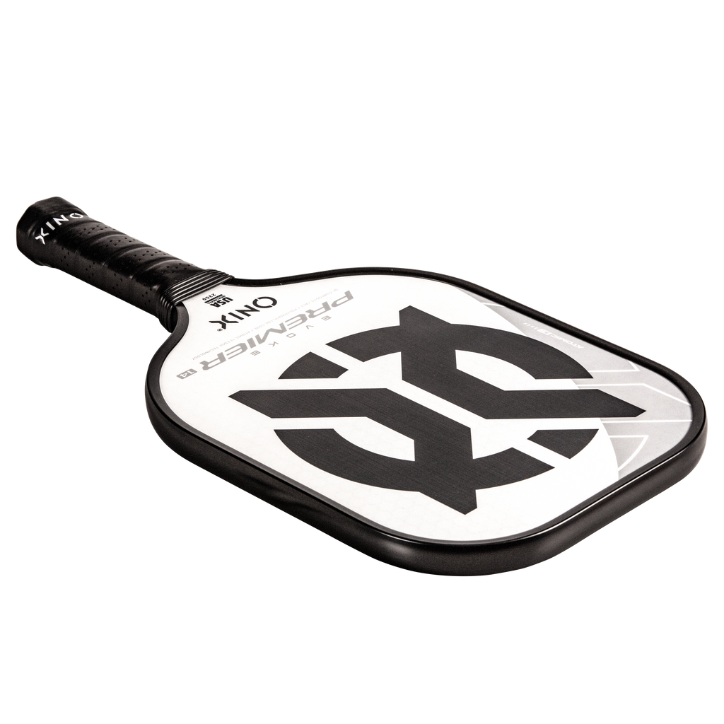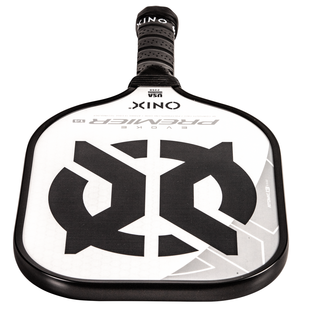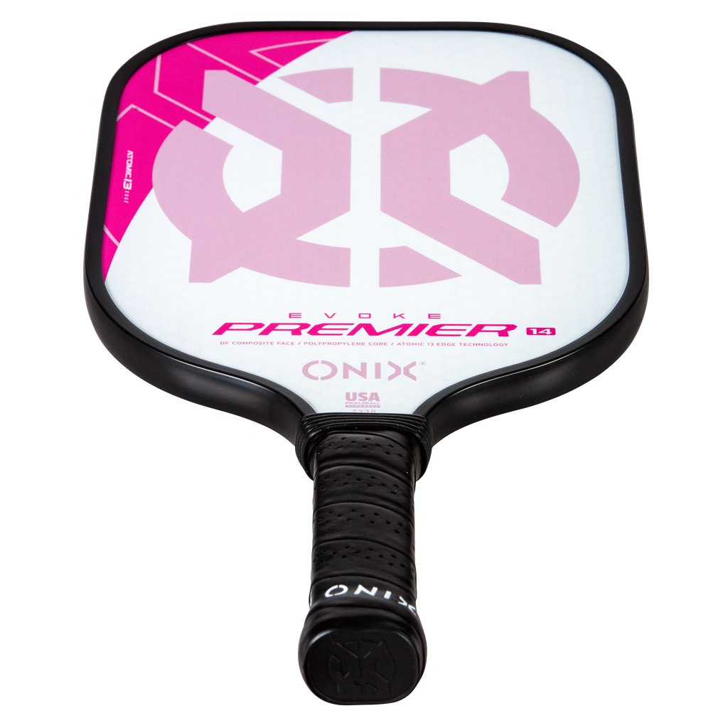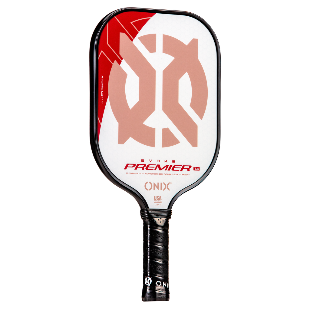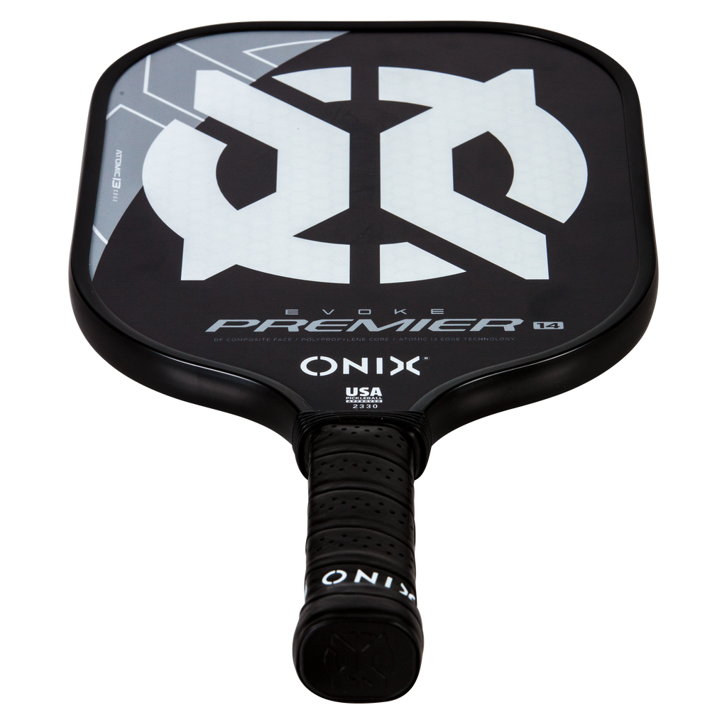 The Evoke Premier paddle brings power and precision to your game like never before. The Evoke Premier uses the new Atomic13 Edge Technology, an edge guard specifically designed to disperse shock while increasing power and swing-speed to the paddle. The DF Composite face provides a consistent minimal coating on the surface to soften the ball without losing any spin or pop off the composite face. The precision cut polypropylene core delivers incredible touch. There are three weights available — light weight paddle (7.5-7.8 oz.), medium weight paddle (7.8-8.2 oz.), heavy weight paddle (8.2-8.5 oz.). The Impact Paddle shape (16” x 8”) is perfect for slightly increasing your reach and maximizing your baseline power, making the Evoke Premier the most powerful and solid paddle in the ONIX Pickleball lineup.