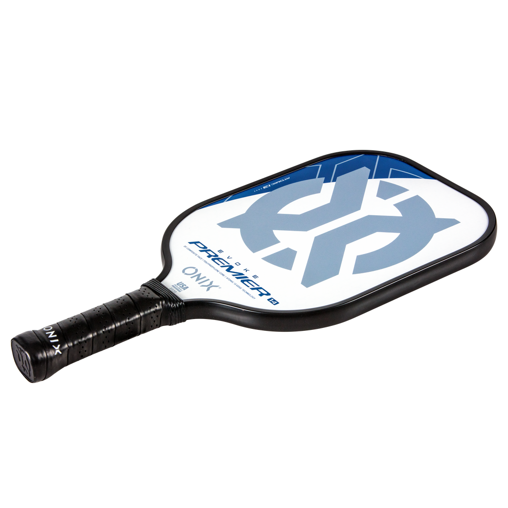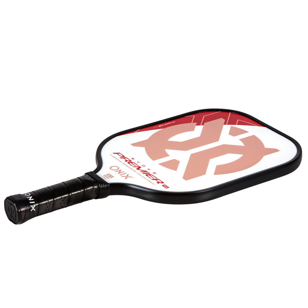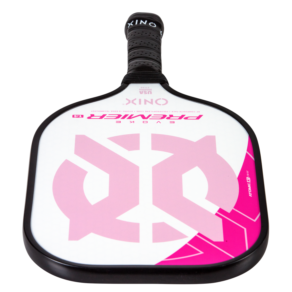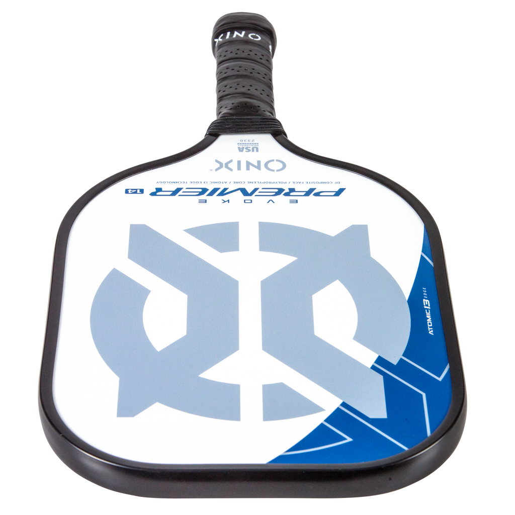 The Evoke Premier paddle brings power and precision to your game like never before. The Evoke Premier uses the new Atomic13 Edge Technology, an edge guard specifically designed to disperse shock while increasing power and swing-speed to the paddle. The DF Composite face provides a consistent minimal coating on the surface to soften the ball without losing any spin or pop off the composite face. The precision cut polypropylene core delivers incredible touch. There are three weights available — light weight paddle (7.5-7.8 oz.), medium weight paddle (7.8-8.2 oz.), heavy weight paddle (8.2-8.5 oz.). The Impact Paddle shape (16” x 8”) is perfect for slightly increasing your reach and maximizing your baseline power, making the Evoke Premier the most powerful and solid paddle in the ONIX Pickleball lineup.