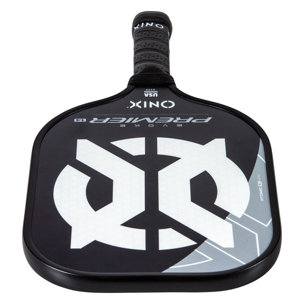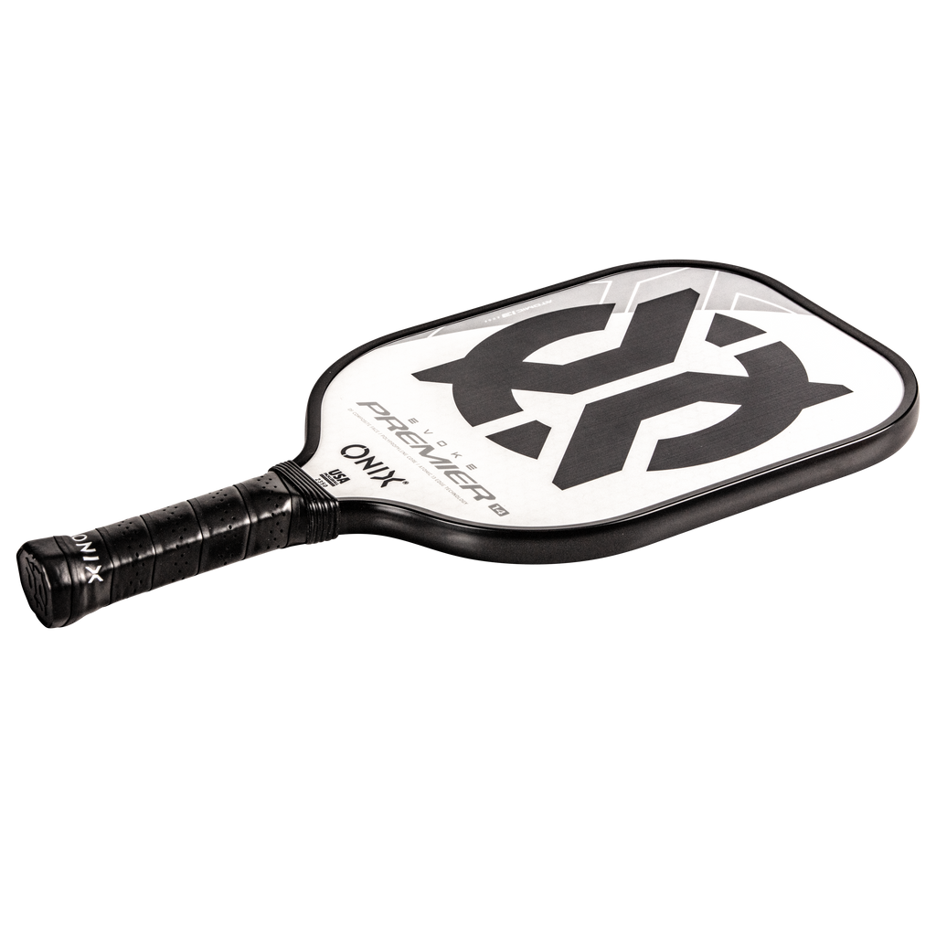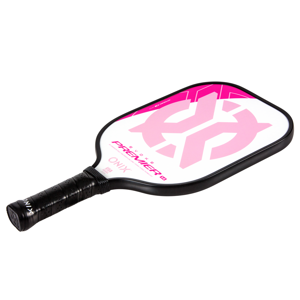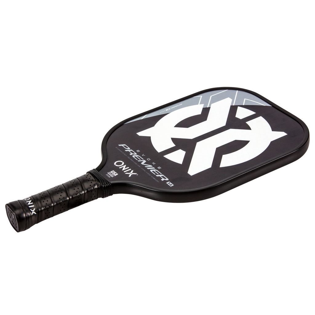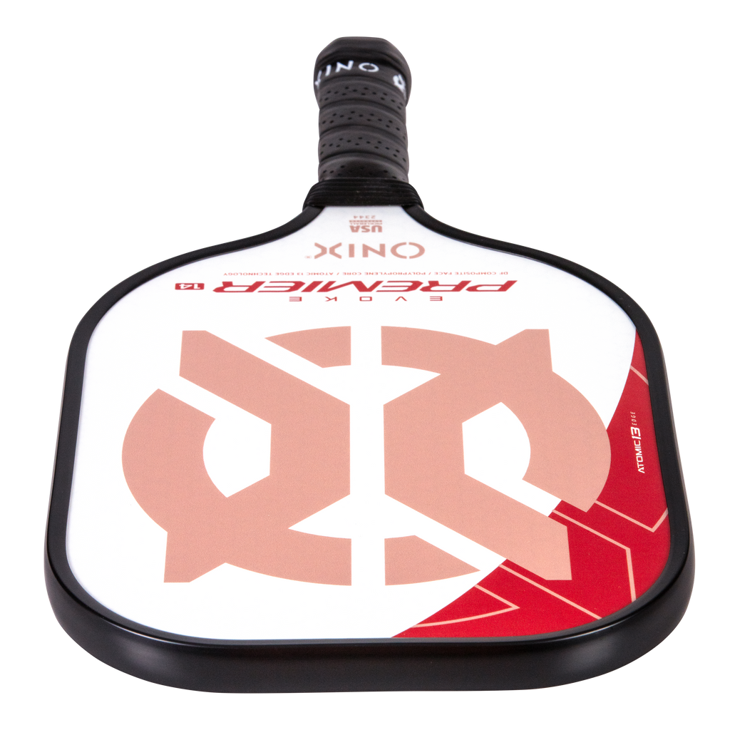 The Evoke Premier paddle brings power and precision to your game like never before. The Evoke Premier uses the new Atomic13 Edge Technology, an edge guard specifically designed to disperse shock while increasing power and swing-speed to the paddle. The DF Composite face provides a consistent minimal coating on the surface to soften the ball without losing any spin or pop off the composite face. The precision cut polypropylene core delivers incredible touch. There are three weights available — light weight paddle (7.5-7.8 oz.), medium weight paddle (7.8-8.2 oz.), heavy weight paddle (8.2-8.5 oz.). The Impact Paddle shape (16” x 8”) is perfect for slightly increasing your reach and maximizing your baseline power, making the Evoke Premier the most powerful and solid paddle in the ONIX Pickleball lineup.