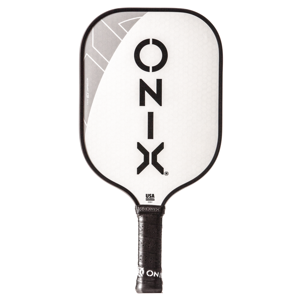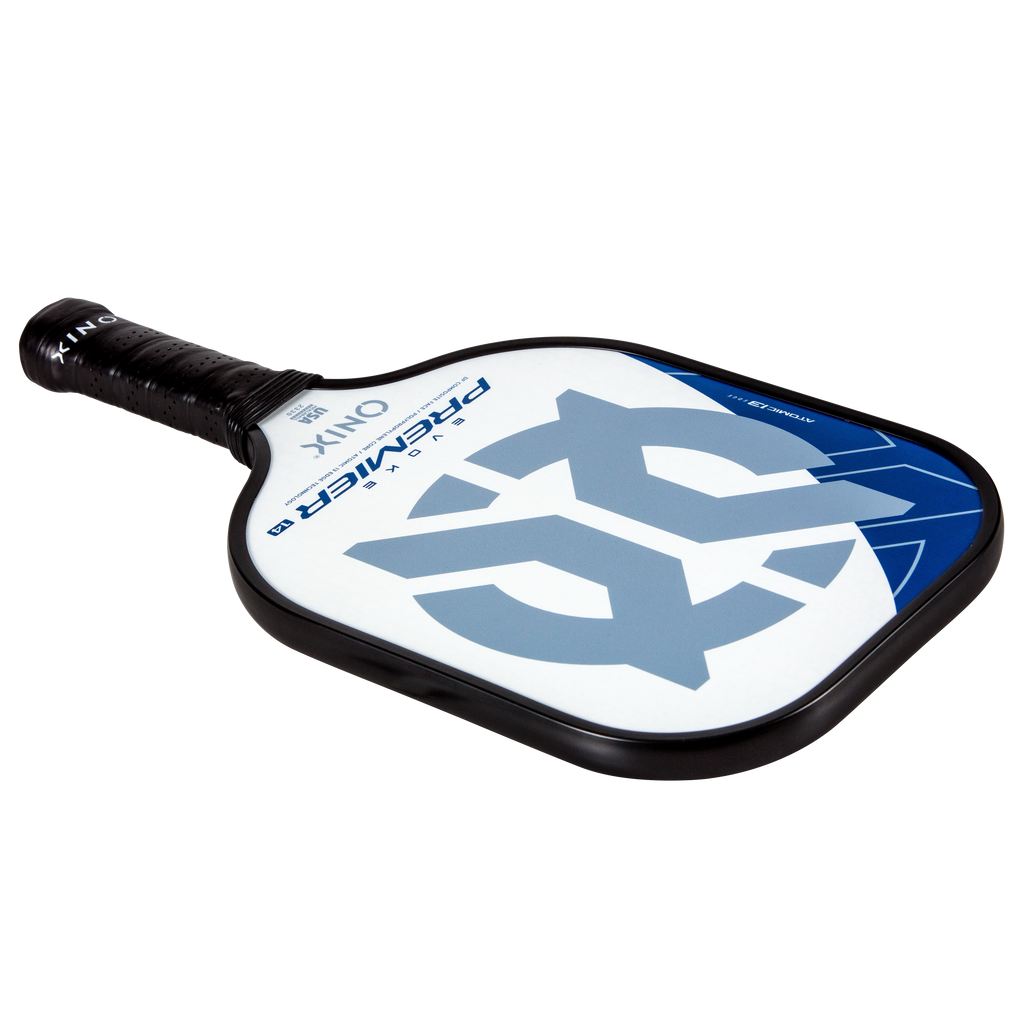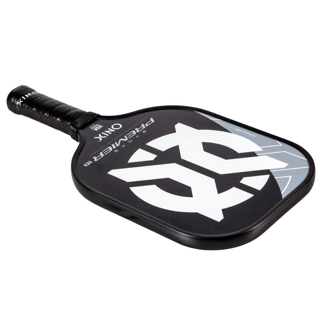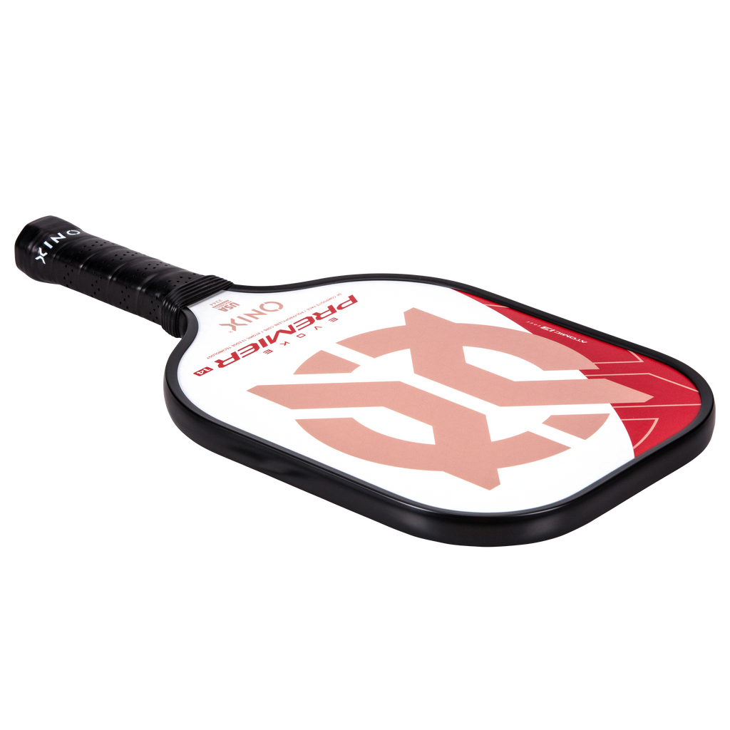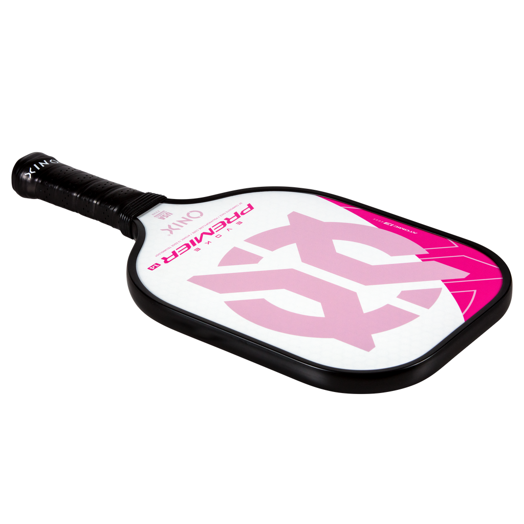 The Evoke Premier paddle brings power and precision to your game like never before. The Evoke Premier uses the new Atomic13 Edge Technology, an edge guard specifically designed to disperse shock while increasing power and swing-speed to the paddle. The DF Composite face provides a consistent minimal coating on the surface to soften the ball without losing any spin or pop off the composite face. The precision cut polypropylene core delivers incredible touch. There are three weights available — light weight paddle (7.5-7.8 oz.), medium weight paddle (7.8-8.2 oz.), heavy weight paddle (8.2-8.5 oz.). The Impact Paddle shape (16” x 8”) is perfect for slightly increasing your reach and maximizing your baseline power, making the Evoke Premier the most powerful and solid paddle in the ONIX Pickleball lineup.