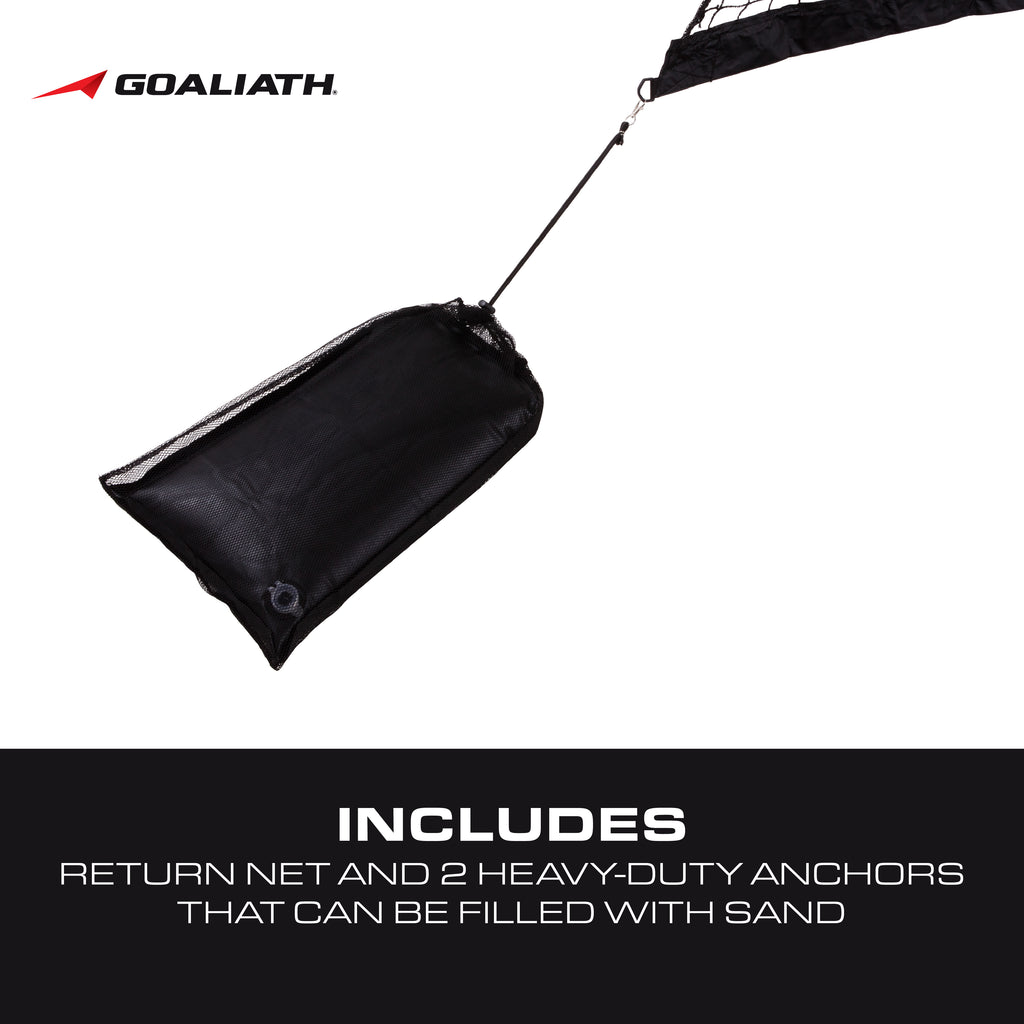 Get more practice out of every practice session with the Goaliath Universal Goal Back. By stopping or returning shots and errant passes, you'll spend less time retrieving loose balls. This net will also work to prevent damage to property- yours and your neighbors', which means you never have to hesitate to pull the trigger when you get an open look. This versatile goal back system can be set with the bottom of the net forward to roll balls back into play for shoot-around sessions, or with the bottom of the net set back to stop loose balls without interfering with game play. The Universal Goal Back attaches to the pole of any in-ground basketball system. It is built tough to resist wear and UV-protected to resists fading. It can be rolled up and stored in the included carry bag for storage during unseasonable weather. All-welded steel construction instead of screws or bolts; tempered glass backboards; rock-solid anchor systems; tough powder-coated finishes; corrosion-resistant zinc hardware. All this adds up to unmatched quality, exceptional durability, and unrivaled playability.
