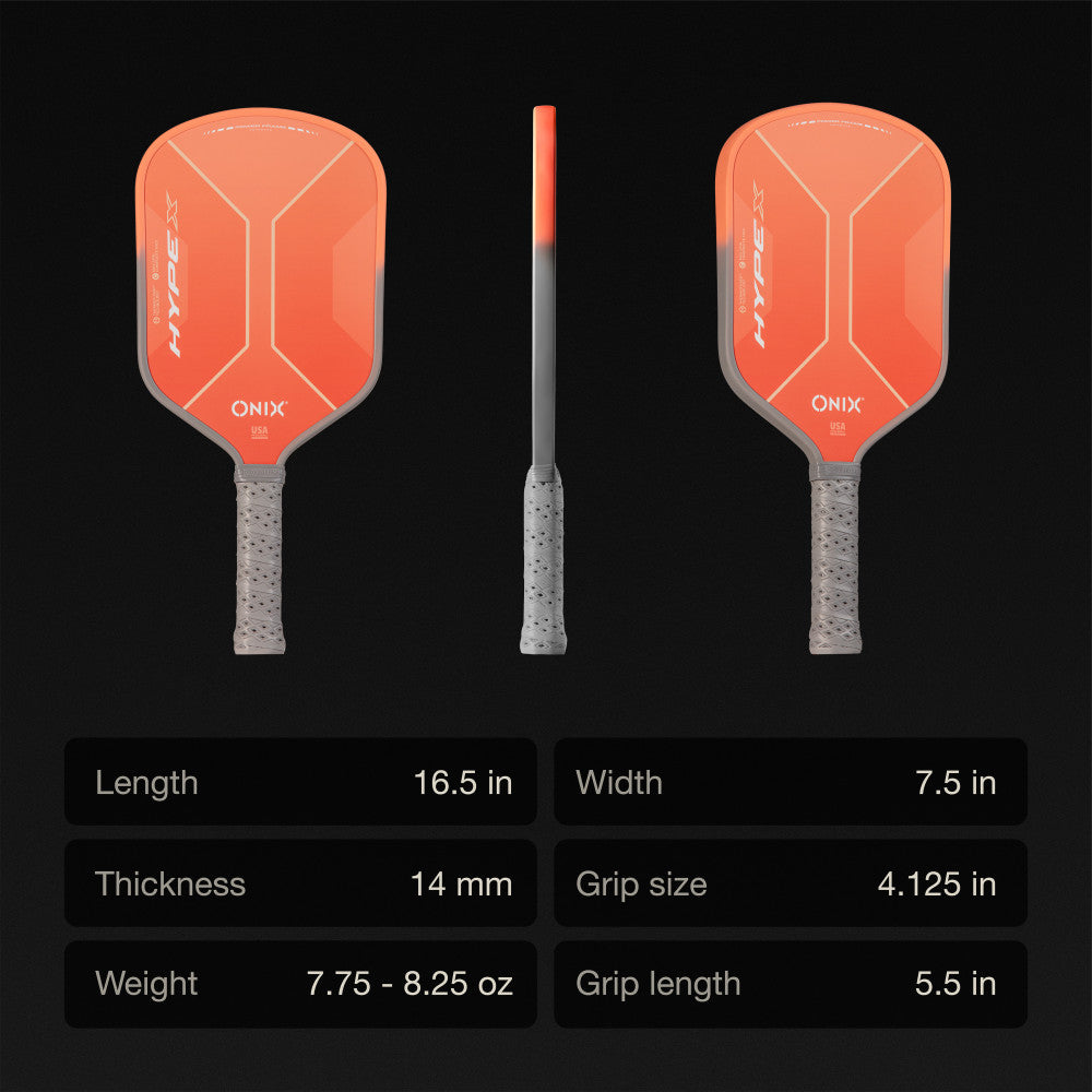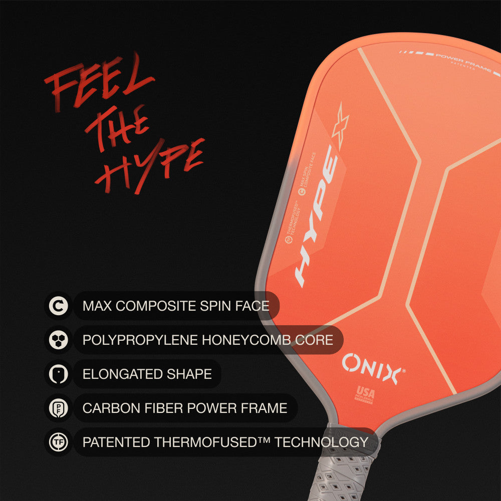 This is your next pickleball paddle. Introducing Hype X. No fads or fluff. Just tested and perfected features that make your game more dynamic (with a Max Composite Face for more spin and Honeycomb Core for more pop), more consistent (with an elongated shape for a larger sweet spot) and more fun, for longer (with a patented Carbon Fiber Power Frame with ThermoFused™ Technology for more durability). All from a brand that's been around since before the boom.