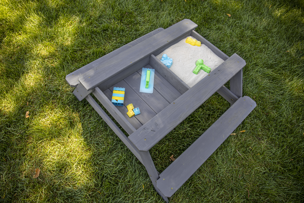 - CONVERT TABLE INTO SAND BOX — Remove center wooden panel to convert table into wooden sand box