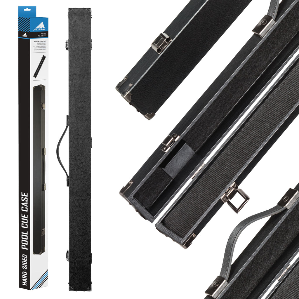 The Mizerak Hard-Sided Pool Cue Case is a convenient and protective solution for transporting your cue. It holds one two-piece cue and features a lightweight, durable, hard-sided design. The case is constructed with metal reinforced corners and a scratch-resistant exterior for added durability. It also includes a convenient carrying handle for easy transport. Ideal for players who need reliable protection and portability for their cue.