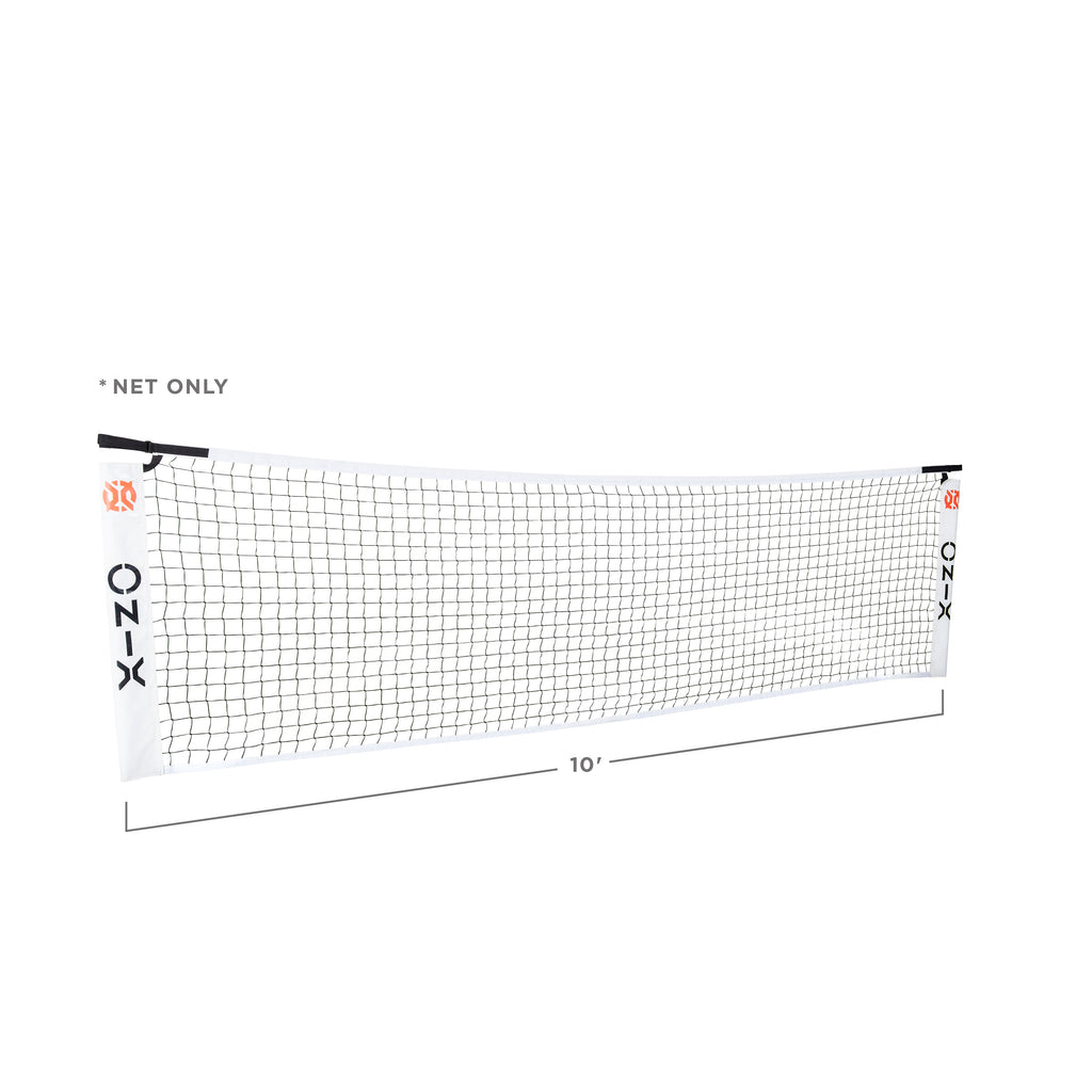 Improve your skills anytime, anywhere with the ONIX Pickleball Replacement Practice Net. This item includes only a 10' replacement net (does not include posts). It is a direct replacement for the practice net included in the KZ3001-3 Pickleball Net and Practice Net Kit. This item only includes the replacement practice net and does not include the two posts. The practice net comes with adjustable Velcro tension straps that swing around the posts that hold up the net for sturdy positioning and reduced net sagging. The net measures 10’ long and 34" high, making it ideal for solo drills, warm-ups, or casual games. Lightweight and portable, this practice pickleball net is easy to fold up, allowing for compact storage and effortless mobility. Whether you're training in your backyard, driveway, or at the park, this net lets you set up and play anywhere with ease. Built for convenience and performance, it’s a great tool for players looking to improve their game on the go. Play your best, anywhere—with ONIX Pickleball.
